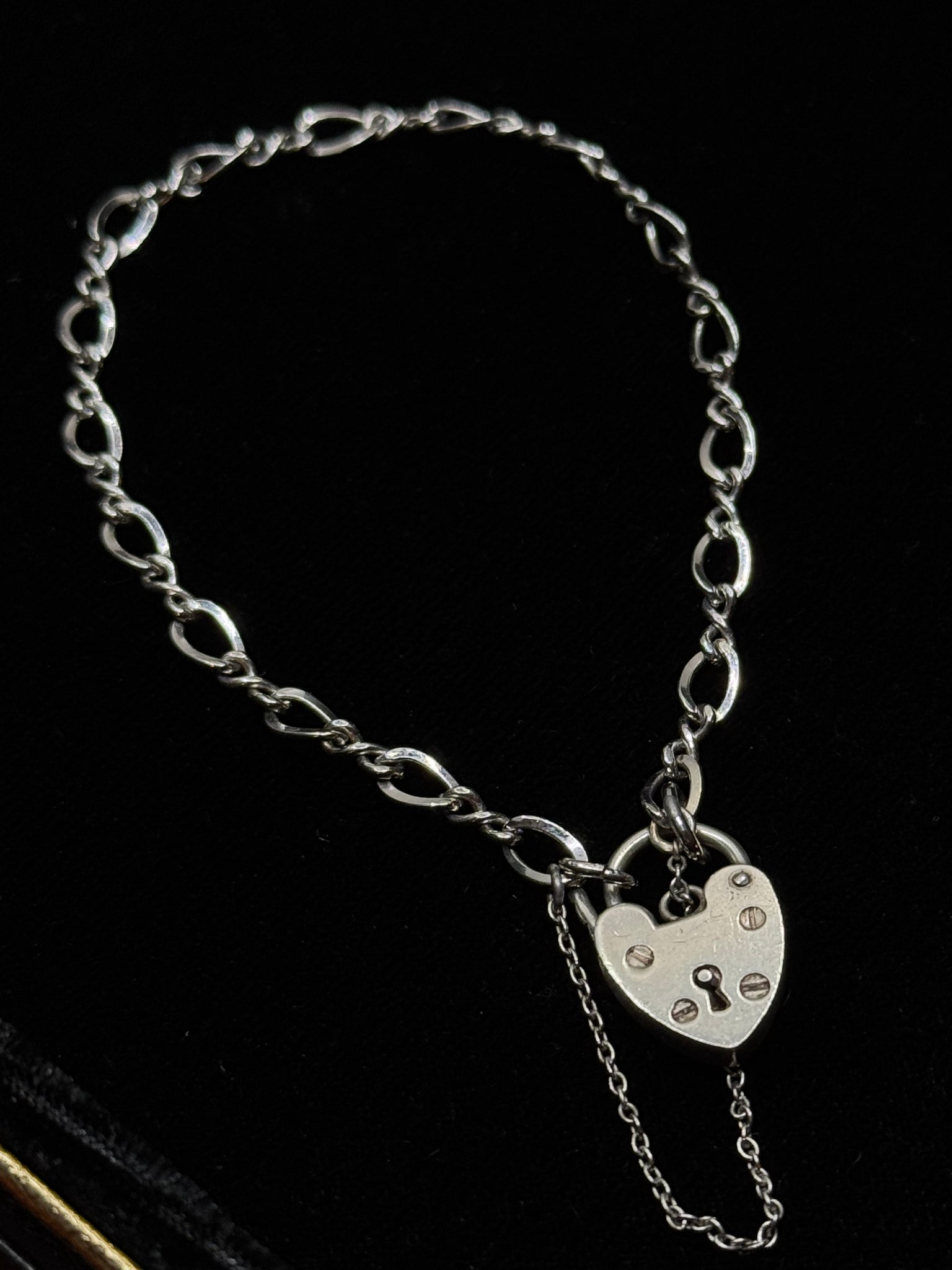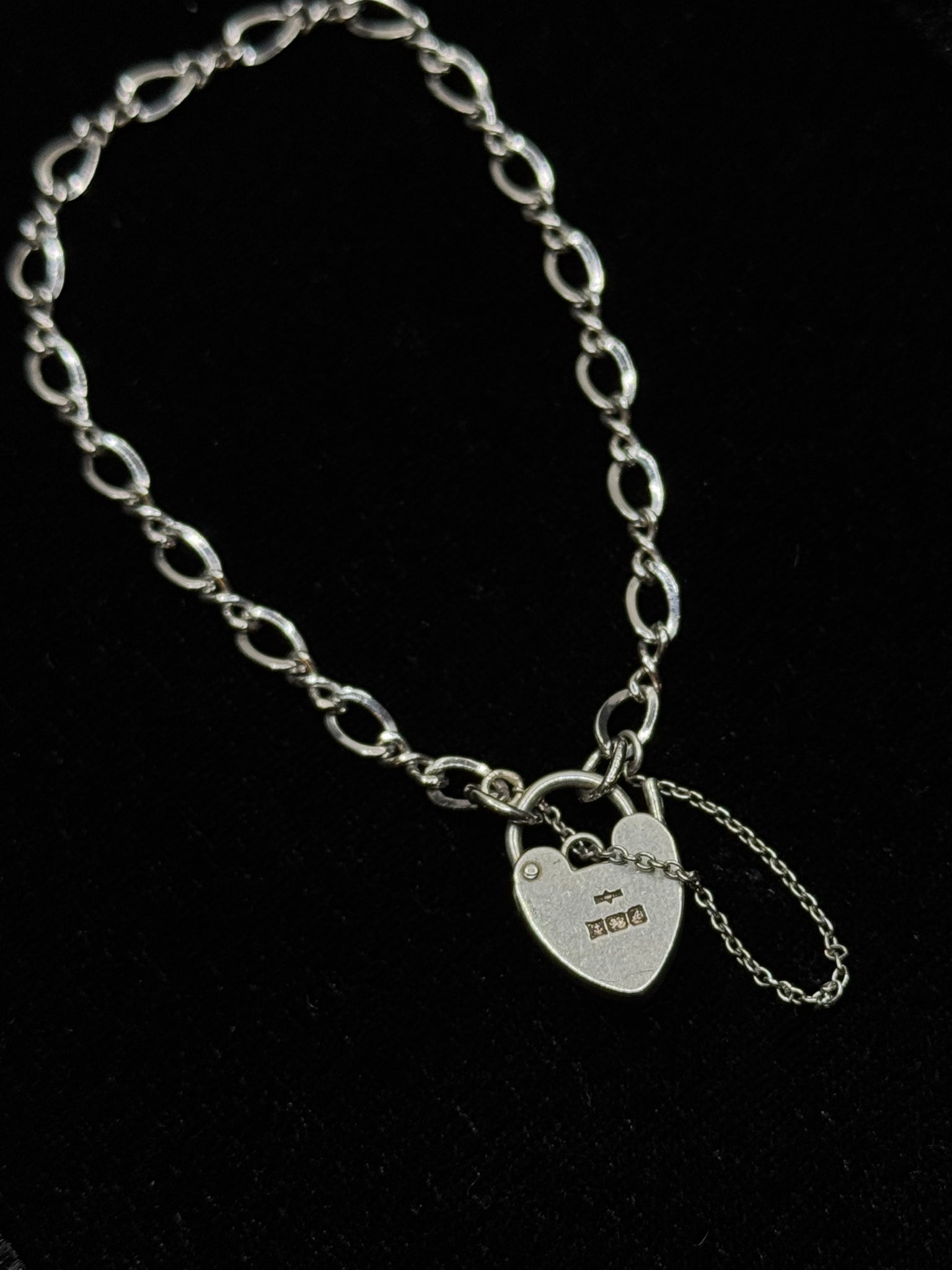 Vintage Sterling Silver Figure Eight Chain Padlock Bracelet